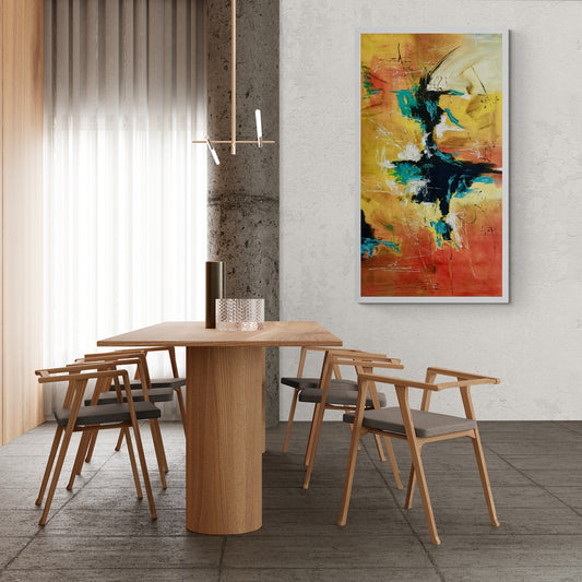 Hand-Painted 34" x 60" Large Original Canvas Wall Art | Electric Ember