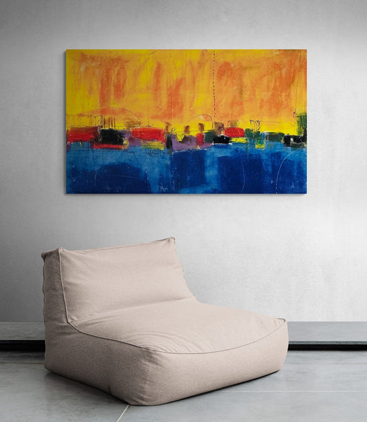 Hand-Painted 35" x 60" Large Original Canvas Wall Art | Sunset Fusion