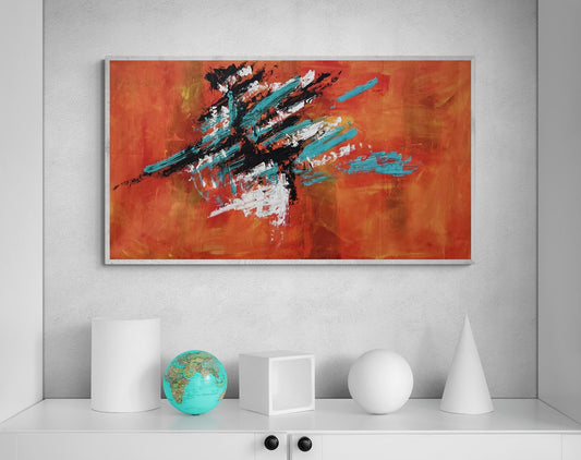 Hand-Painted 34" x 60" Large Original Canvas Wall Art | Electric Ember