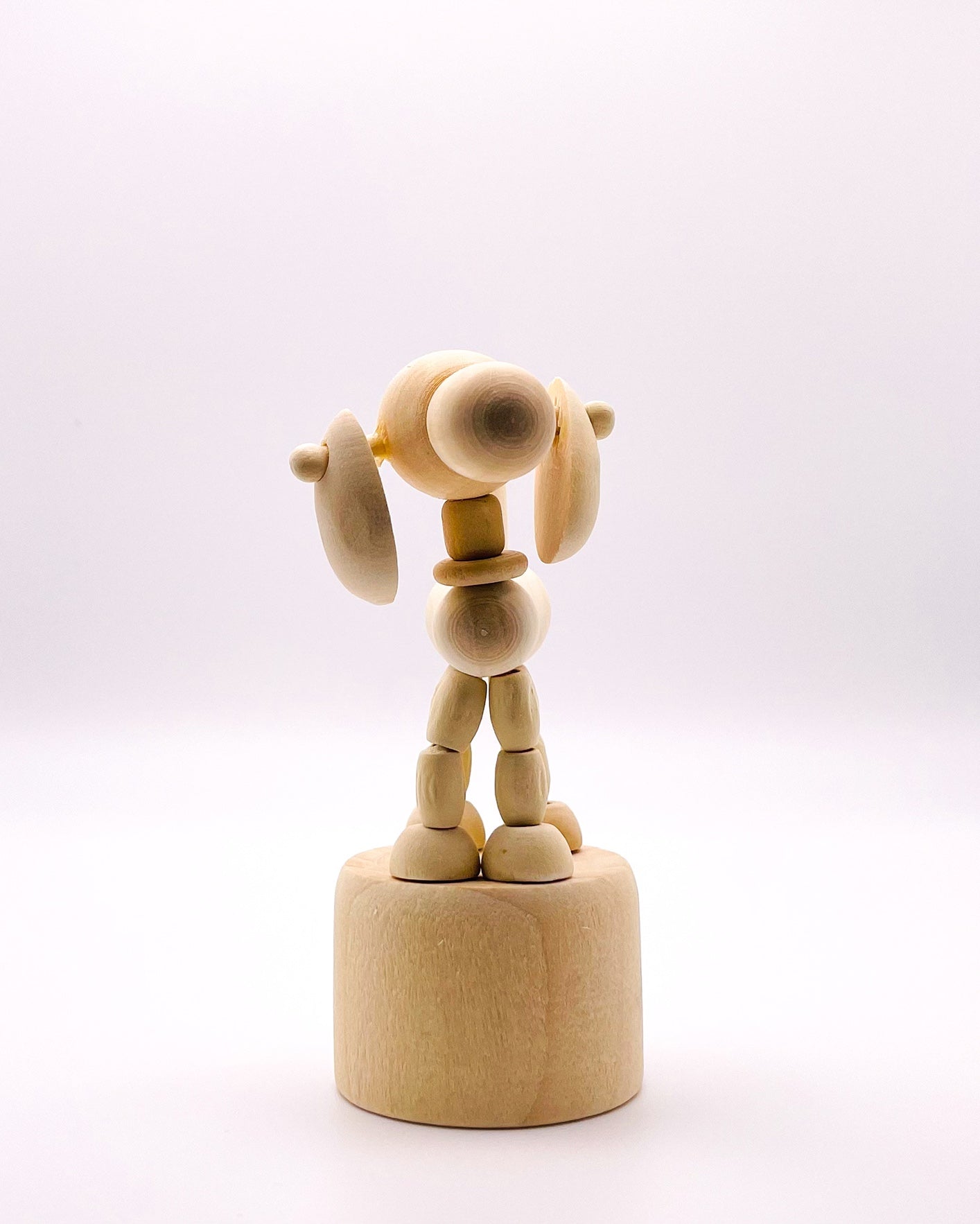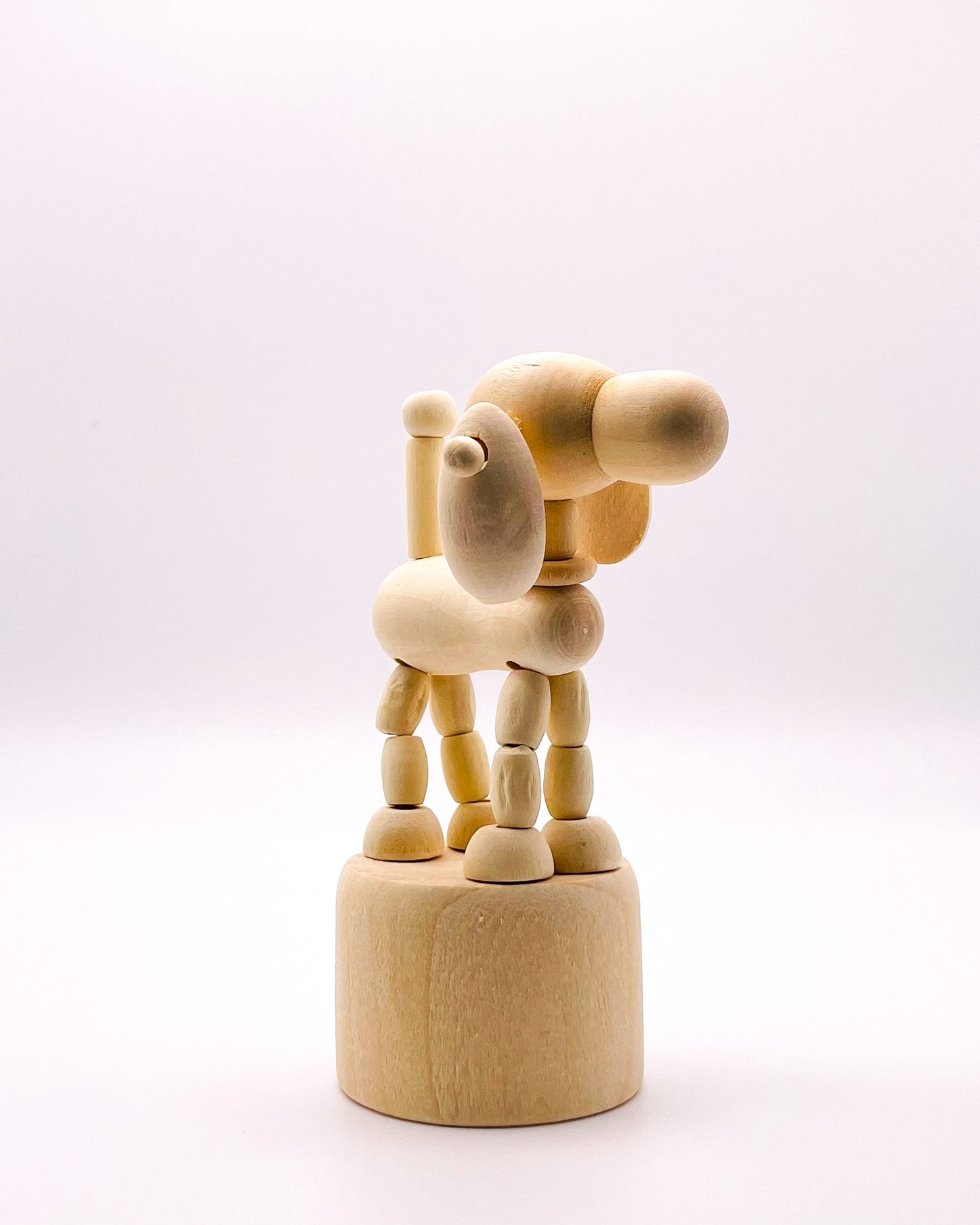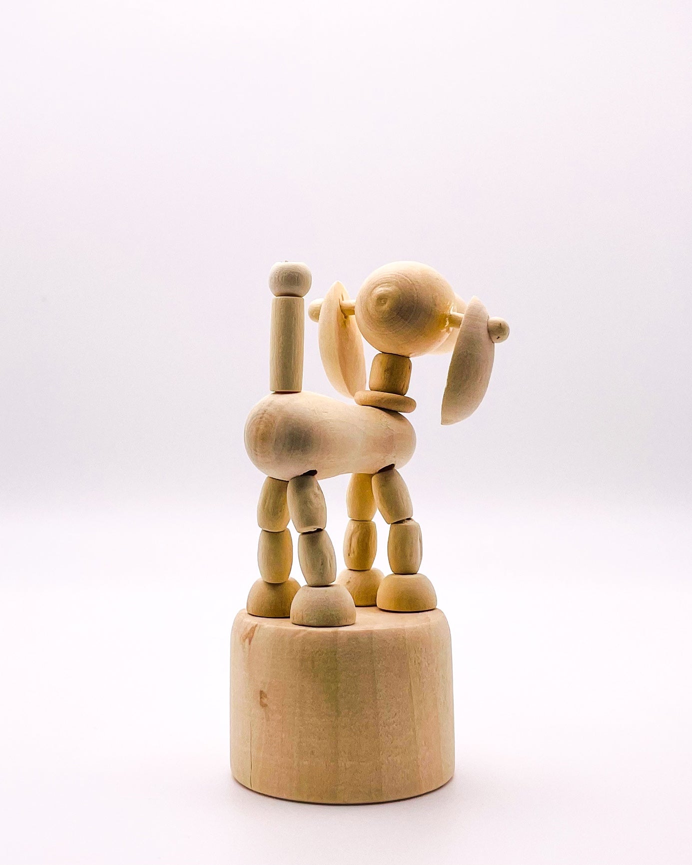 Introducing RasavattA's delightful Nordic-style wooden Big Eared Dog Decor & Play Figure—a delightful fusion of artistry and functionality. Crafted with precision and care, this movable figure puppet serves as both a captivating decor piece and an engaging toy for children. Simply push the base of the puppet to watch it move/dance, creating whimsical movements that captivate the imagination and reduce stress by its very nature.