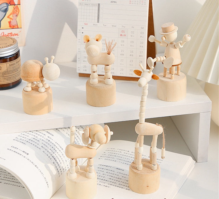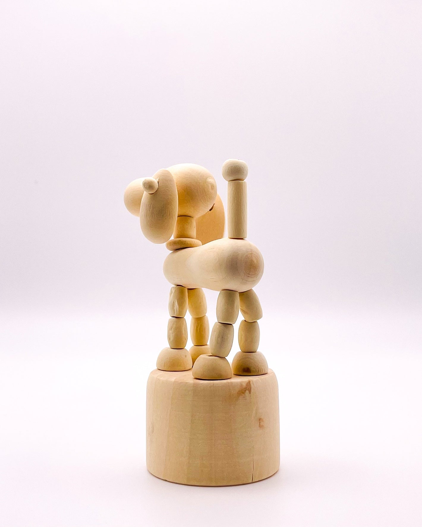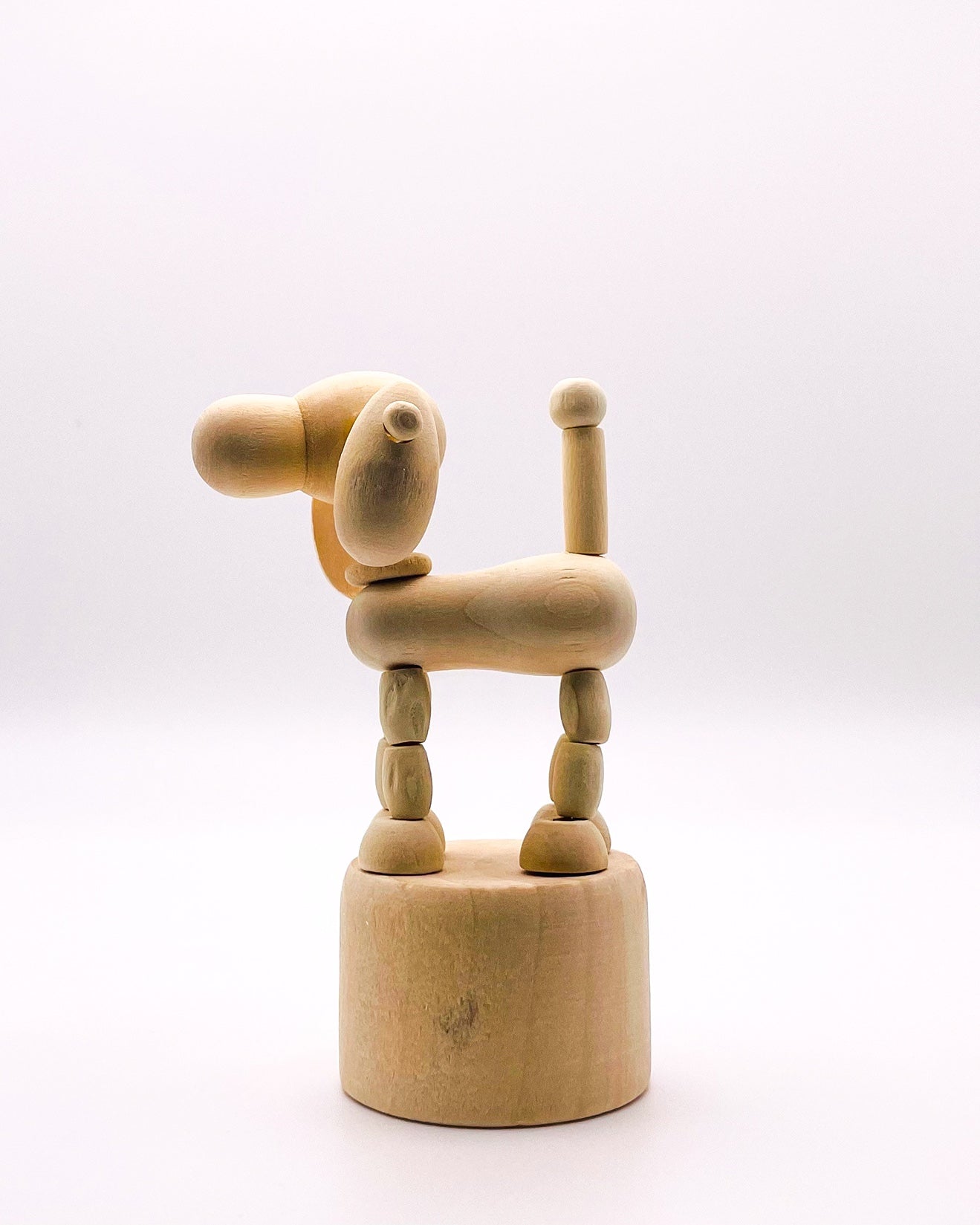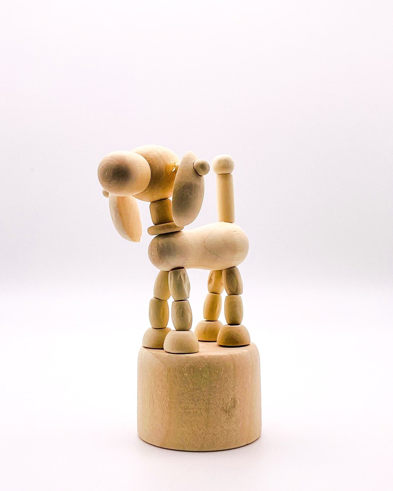 Introducing RasavattA's delightful Nordic-style wooden Big Eared Dog Decor & Play Figure—a delightful fusion of artistry and functionality. Crafted with precision and care, this movable figure puppet serves as both a captivating decor piece and an engaging toy for children. Simply push the base of the puppet to watch it move/dance, creating whimsical movements that captivate the imagination and reduce stress by its very nature.