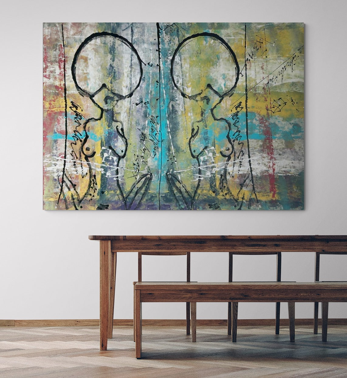 Celebrate female representation with Green Goddesses, a stunning abstract beauty that embodies the power and grace of mythical goddesses. This large art piece will elevate any space with its intricate details and vibrant colors. This original hand-painted wall art is a must-have for any art collector and a perfect gift for those who appreciate the divine femininity. Experience the wonder of Green Goddesses today.