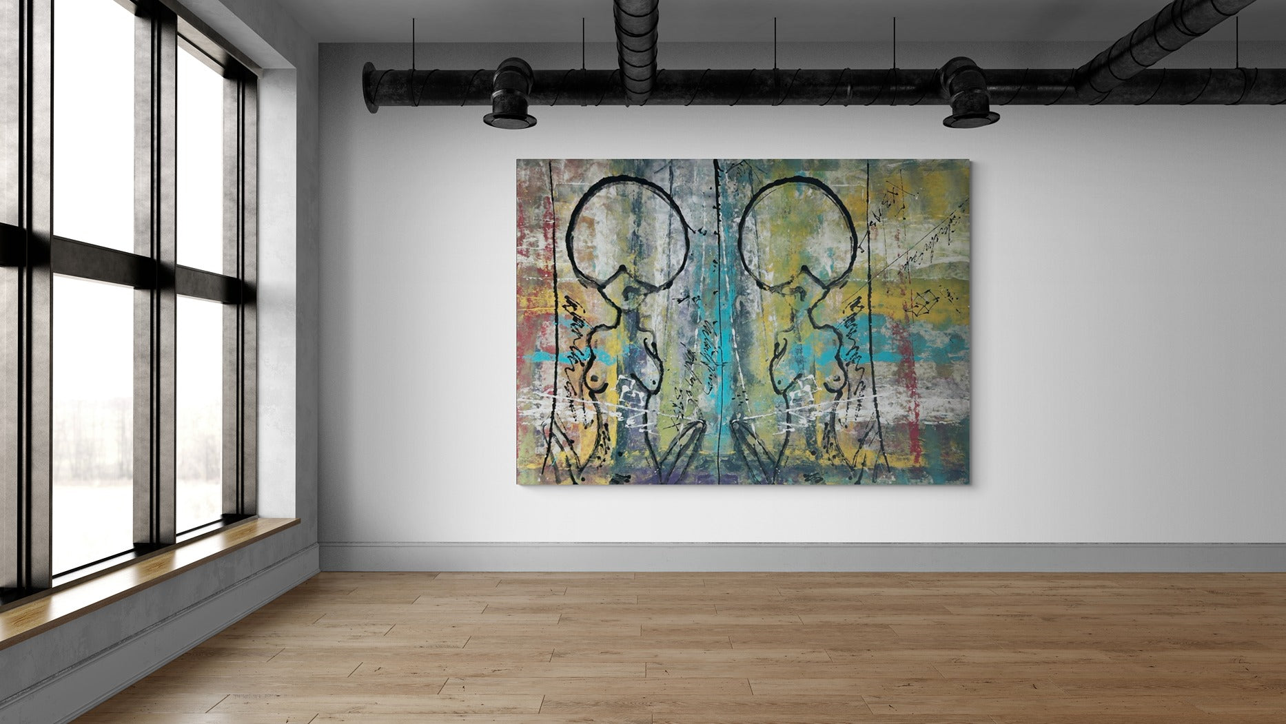 Hand-Painted 75" x 55" Large Original Canvas Wall Art | Green Goddesses