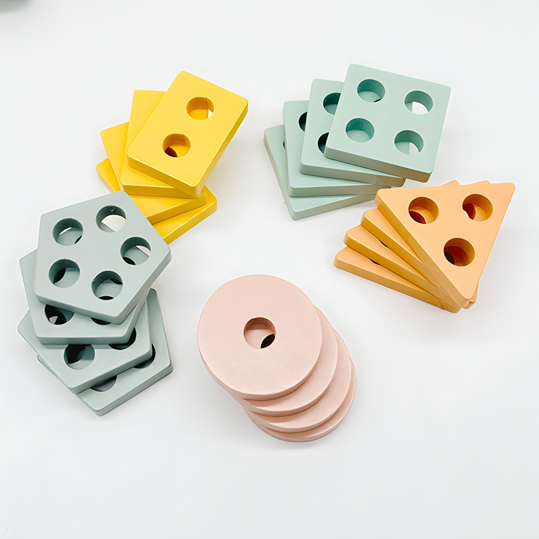 Elevate your child's playtime with our expertly crafted wooden Multicolor Geometric Stacker. Inspired by the renowned Montessori educational principles, this product isn't just a source of amusement—it's a gateway to profound learning experiences. From enhancing fine motor skills to fostering cognitive development, it’s tailor-made for ages 2+ years, offering a dynamic platform for growth and exploration.