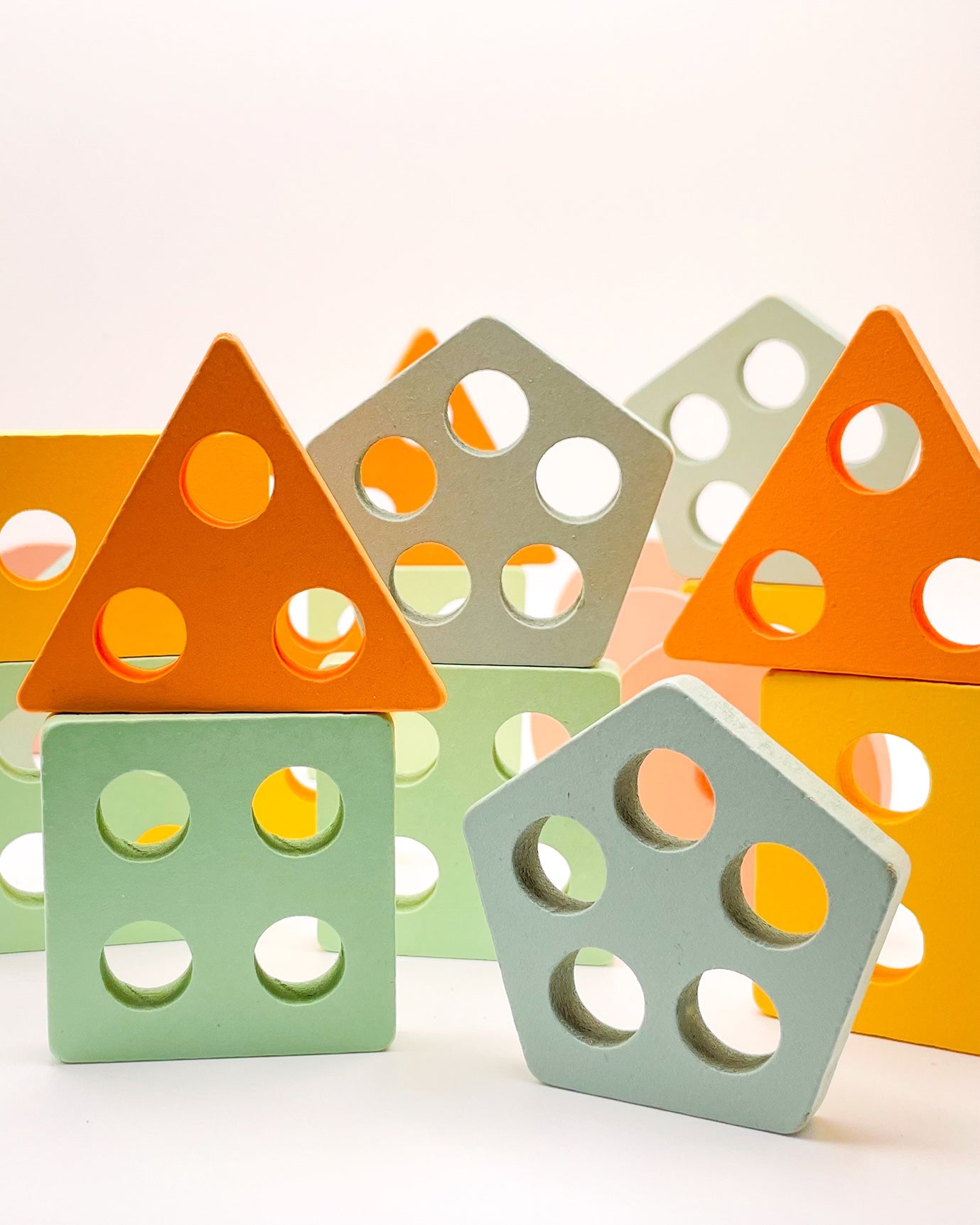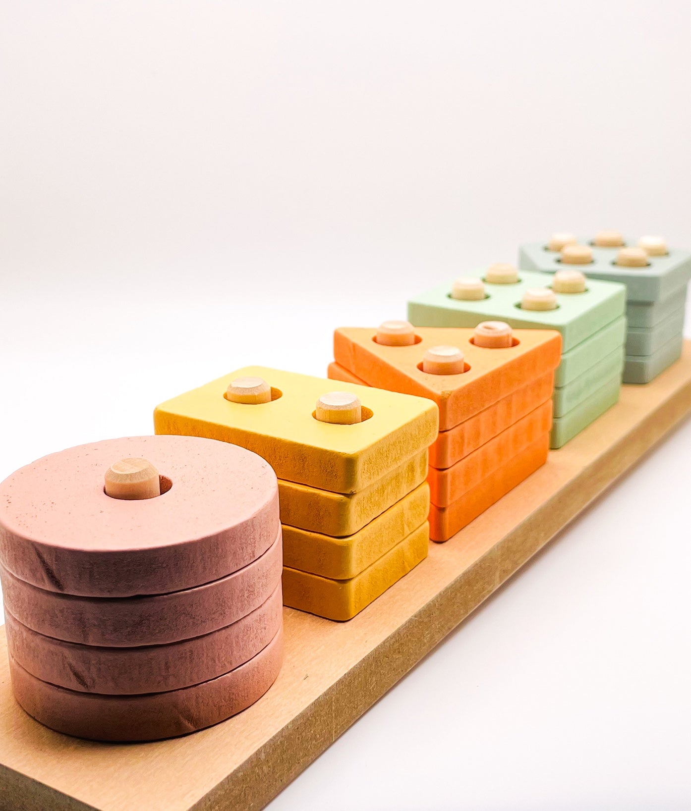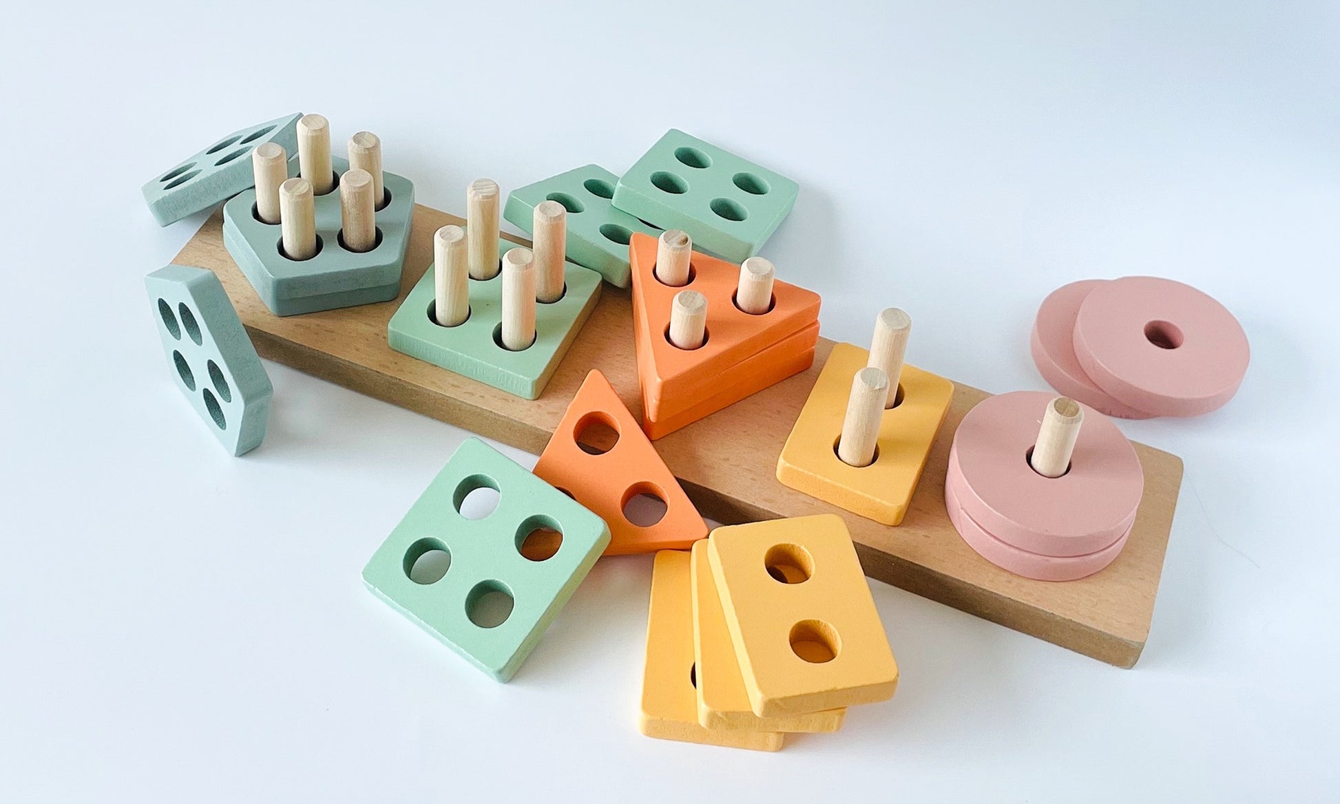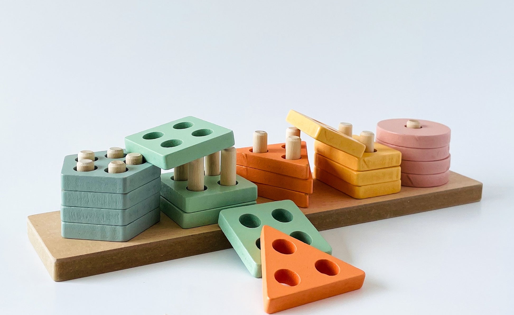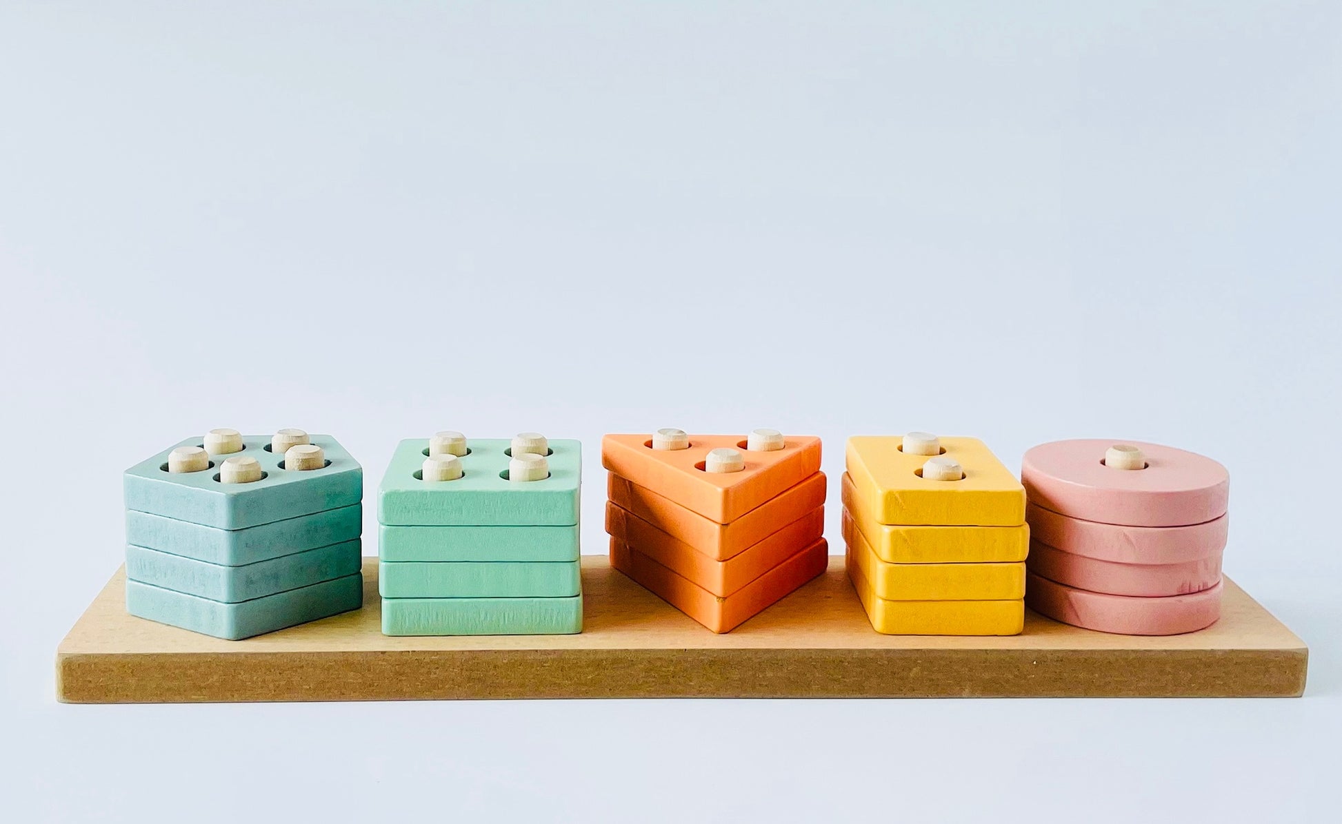 - Colors: Natural wood, yellow, blue, green, orange, pink.