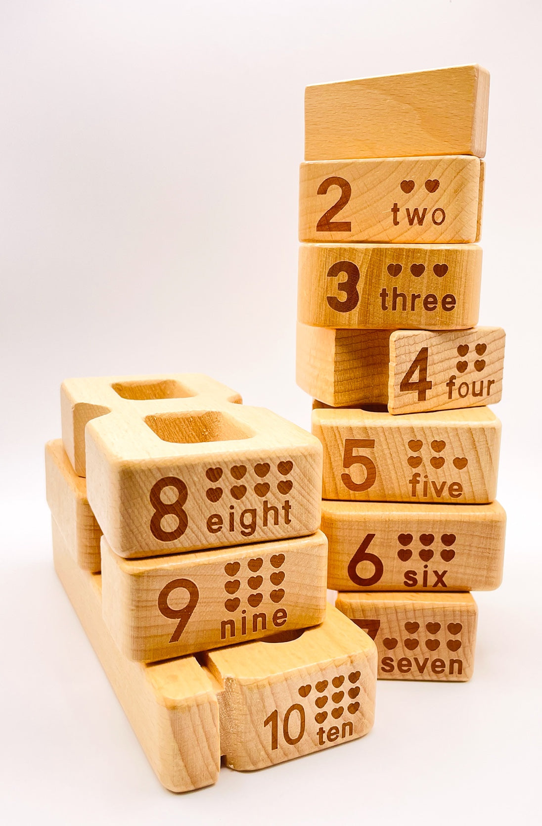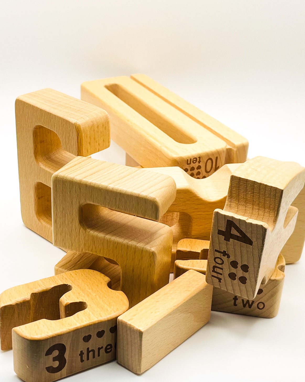 Step into the world of numbers and mathematical discovery with RasavattA's crafted 3D Number Blocks. Designed to combine learning and play in the most engaging manner, this set of 10 wooden pieces is the perfect tool for teaching children counting and mathematics concepts while they immerse themselves in imaginative exploration. What sets our blocks apart is their unique feature: the size of each block is directly proportional to the number it represents. This means that no matter how they're stacked, if the numbers add up, the heights will match, providing a tangible and intuitive way for children to grasp numerical values.