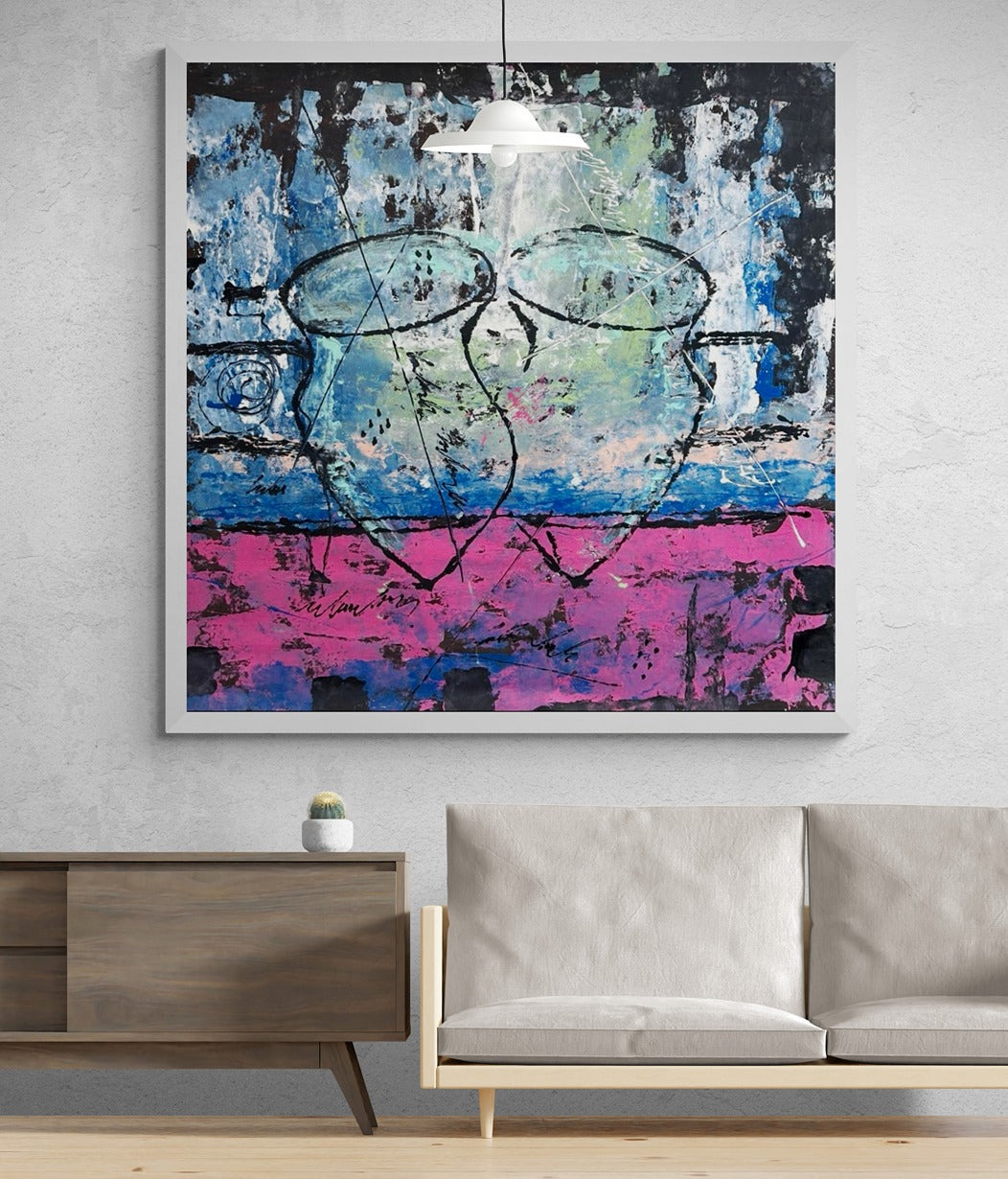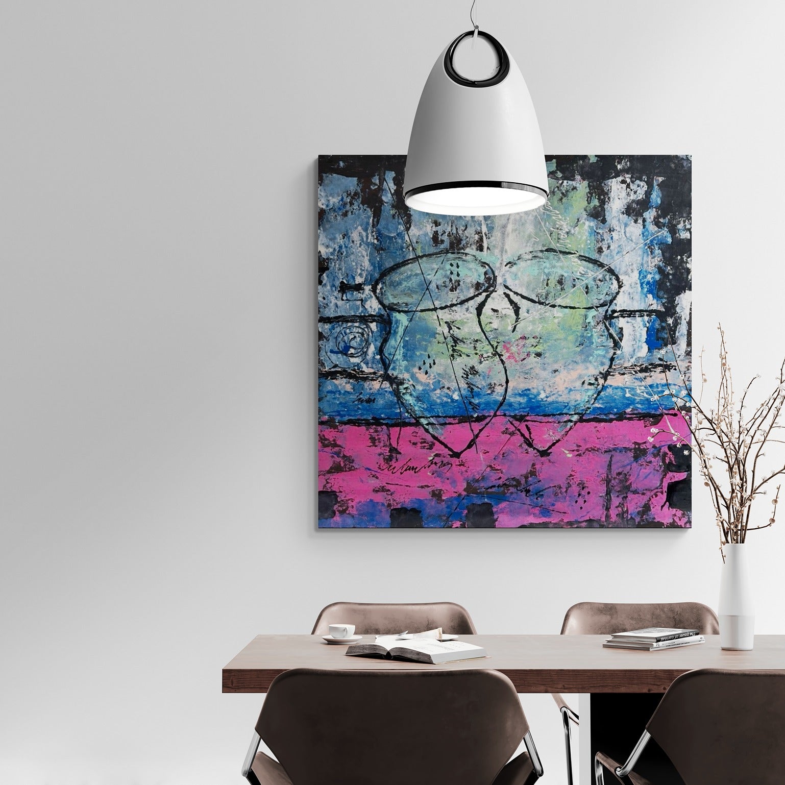 Discover the bold and vibrant world of the Whimsical Vase Waltz. This abstract impressionist piece showcases stunning magenta hues and colorful vases, sure to add a touch of whimsy to any room. Let this original hand-painted wall art spark your imagination and elevate your space.